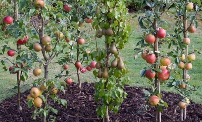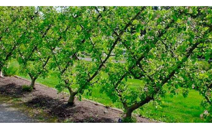 Stĺpová forma ovocných stromov je pestovaná v šikmine.