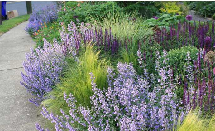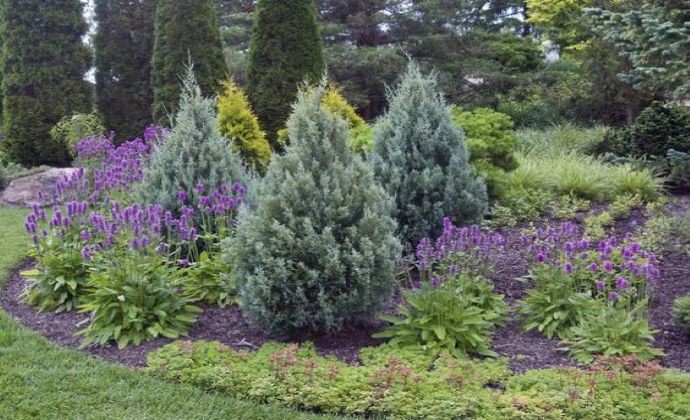 Uplatnenie takejo kombinácie výsadby pri chodníku je možné spraviť aj záhrade.