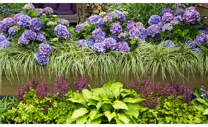 Záhon trvaliek, ktoré nepotrebujú plné slnko.