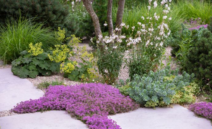 Trvalkový záhon, v ktorom je maximálne využitý priestor .