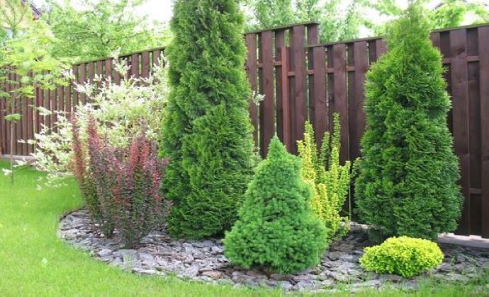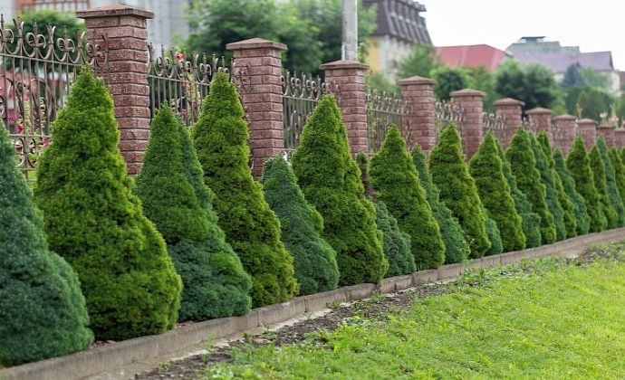 Zelené oplotenie je možné vytoriť aj pomocou smrekov ihlanovitého tvaru.