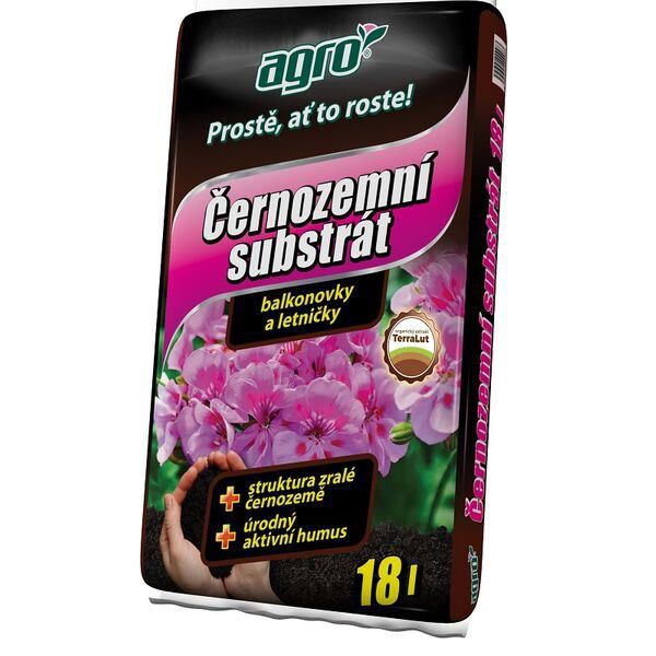 Substratul de pământ negru AGRO pentru plante de balcon și anuale este un substrat special cu o structură liberă și suplă, care amintește de chernozemul fertil tradițional, cunoscut din regiunea Polabia sau Podunajsko. Este un amestec de turbă neagră de înaltă calitate, humus de scoarță matură și nutrienți de pornire. Substratul este dezvoltat pentru nevoile plantelor de balcon și anuale cultivate în containere sau liber în paturi, care au nevoie de o doză mare de nutrienți pentru a crește și înflori (gerani, petunii, verbene, lobelii, begonii, fuchsias, biden etc.). Substratul constă din turbă, humus matur de bună calitate, pH ajustat, nutrienți starter cu microelemente pentru primele 4 săptămâni și este îmbogățit cu Terallut. Terallut este un levigat organic special din sedimente de turbă de apă dulce, bogat în acizi fulvici și humici. Substratul este apreciat în special de grădinarii care nu doresc soluri bogate și fertile, dar doresc și o bază de calitate pentru cultivare, fără buruieni și dăunători nedoriți. Conținutul ambalajului este de 18 l.