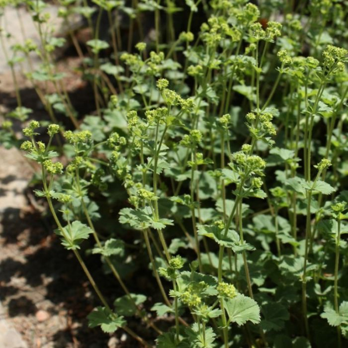 Alchemilla Alma este o plantă perenă mai mică, cu frunze pitorești, moi, ușor păroase. În roua de dimineață, picăturile de apă se prind nostalgic pe ele. Obiceiul este compact, iar florile galben-portocalii, apar la începutul verii.