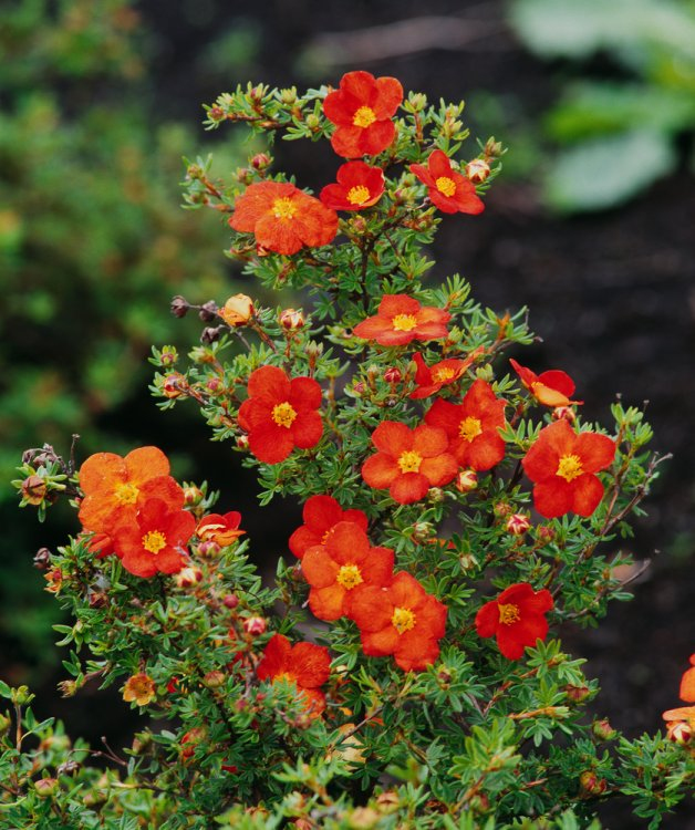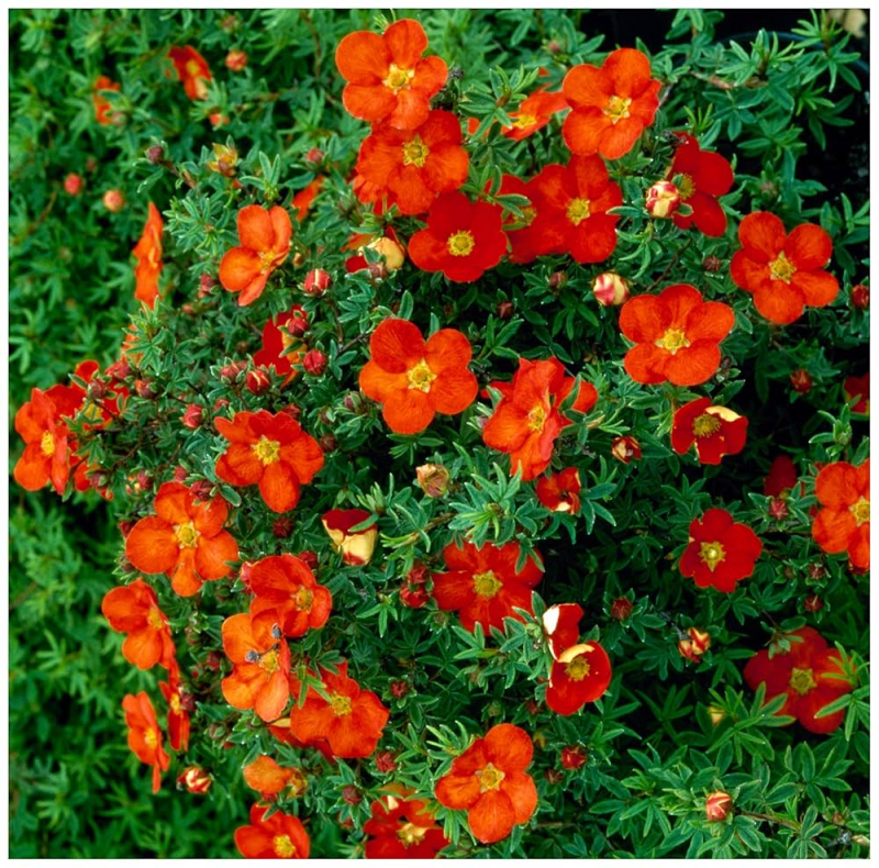 Arbustul "RED ACE" formează un arbust dens, acoperitor de sol, care se caracterizează prin înflorire lungă și abundentă. Înflorește din aprilie până în octombrie cu o profuzie de flori roșii care devin nuanțe de portocaliu și galben pe tot parcursul sezonului. Frunzele mici sunt de culoare verde închis și cresc foarte dens pe lăstari. Crește foarte răspândit în lățime, putând ajunge până la 1 m lățime.