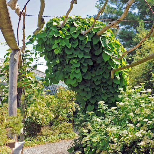 Provine din estul Statelor Unite. Este cultivat pentru aspectul său atrăgător, cu frunze verzi și în formă de inimă. Vara produce flori mici, în mare parte ascunse sub frunziș. Acestea sunt de culoare bej-nisipoasă, cu un gât maroniu până la roșu burgundy. Crește rapid, putând crește un metru într-un sezon. Frunzele sunt caduce și ajung până la 30 cm lățime. Se înfășoară rapid în jurul oricărui suport și formează un zid verde impermeabil pe garduri. Suportul trebuie să fie suficient de rezistent, deoarece plantele adulte sunt foarte grele în timpul verii. Tunderea este mai bună după înflorire sau primăvara, înainte de înflorire. Se folosește pentru a acoperi pergole, pereții caselor etc.
