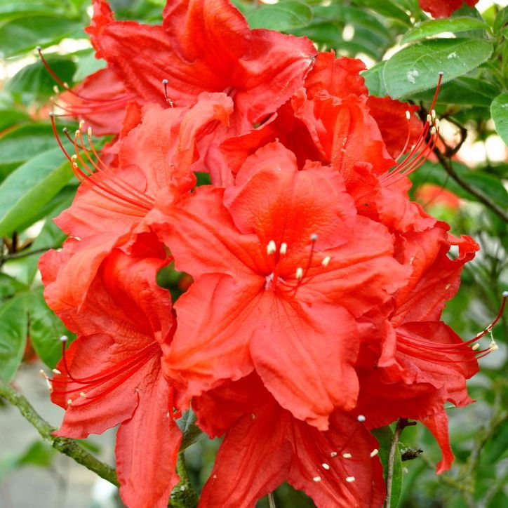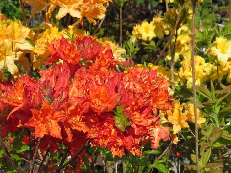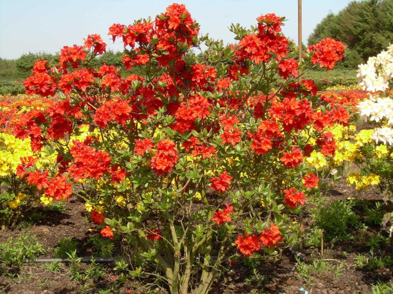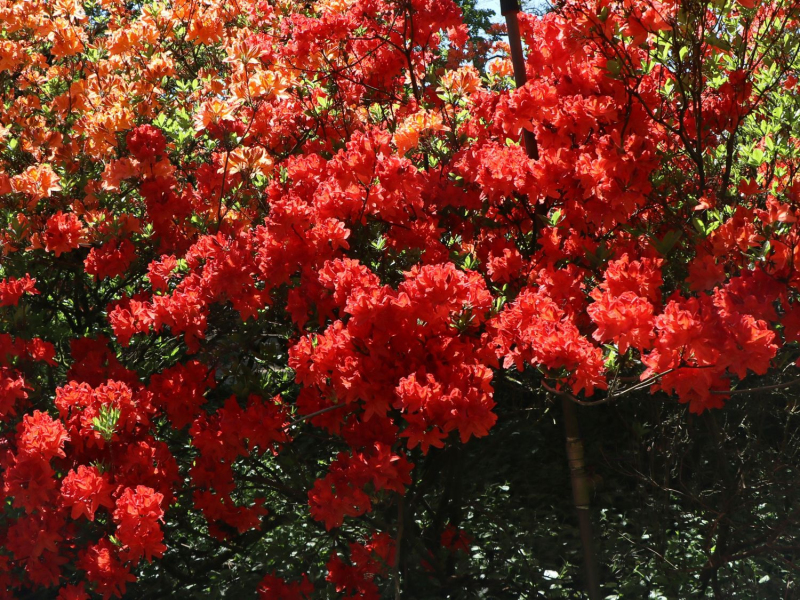 Azaleele așa-numitele lemnoase - foioase se numără în mod fiabil printre cei mai frumoși arbuști cu flori primăvara. Soiul "Feuerwerk" crește până la o înălțime de aproximativ 1,2 m , care este numit pe bună dreptate focuri de artificii. Se distinge prin florile sale distinctive de culoare roșu aprins cu o nuanță portocalie, care amintesc de limbi de flacără. Florile sunt mari, de 7-8 cm diametru, delicat parfumate și înfloresc de la mijlocul lunii mai până la începutul lunii iunie. Azaleele de foioase sunt plante iubitoare de pădure care, spre deosebire de azaleele japoneze, iubesc soarele deplin, cu condiția să aibă un sol constant umed, acid, cu un ph între 4 și 5. Ele preferă un sol ușor, necalcaros, permeabil, cu turbă, compost și mulci lemnos de suprafață. Solurile grele sunt ușurate prin adăugarea de nisip și borax fin. Un drenaj bun este important în cazul solurilor argiloase grele. Tăiați ciorchinii de flori imediat după înflorire. Rădăcinile nu trebuie lăsate niciodată să se usuce.