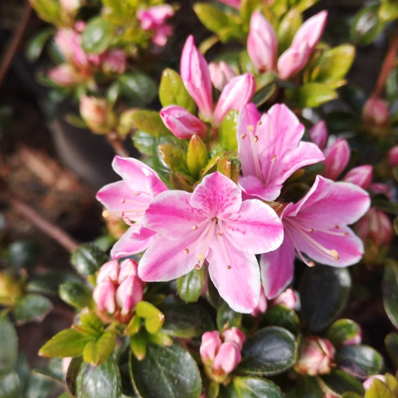 Azaleele japoneze sunt un accesoriu foarte popular în grădinile noastre. Ele pot fi modelate prin tăiere, cel mai potrivit în iunie, astfel încât să aibă timp să formeze bobocii florali pentru sezonul următor. Acestea au nevoie de un sol ușor, acid, foarte permeabil și, de preferință, în permanență umed (nu înecat), bogat în fier și fosfor. Folosiți îngrășăminte speciale pentru rododendroni și azalee, eventual pentru plantele de pădure. Cel mai bine este ca solul să fie acoperit în permanență cu mulci pentru a reține umiditatea. Azaleea "Kermesina Rose" este un must pentru cei cărora le plac florile colorate sau multicolore. Acestea sunt roz cu o margine alb pur. Frunzele sunt de culoare verde mediu spre închis, ovale, lungi de doar 2-3 cm. La umbră parțială și umbră rămân pe arbuști toată iarna, dacă sunt plasate în plin soare se pot pierde. După înflorire, apar frunze noi.
