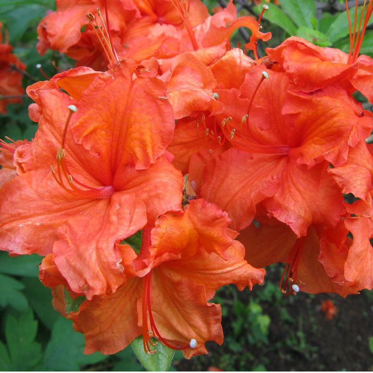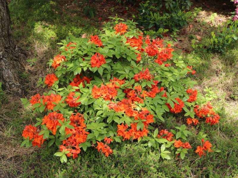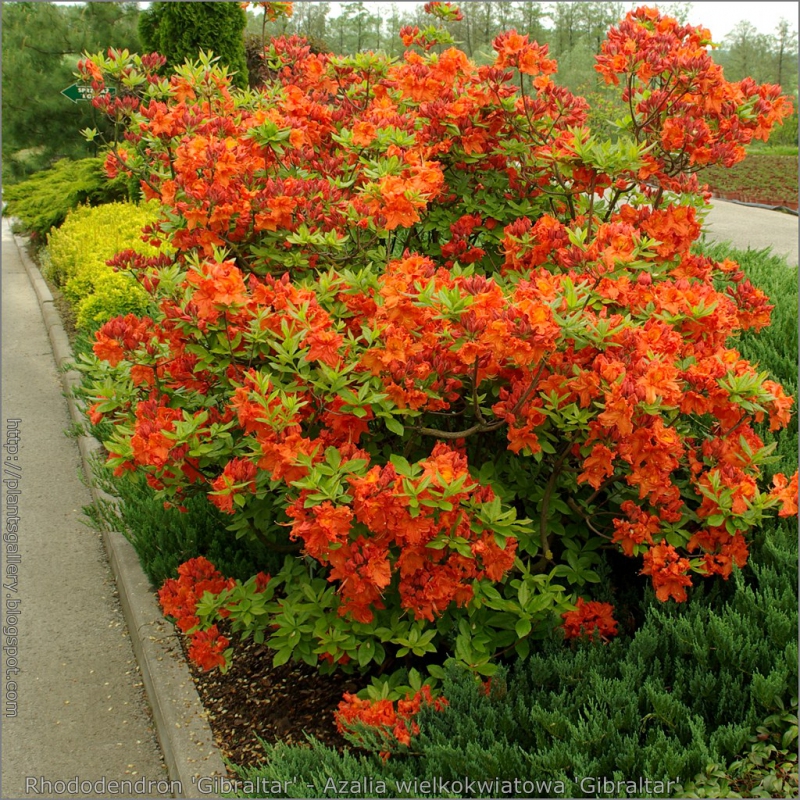 Azaleele așa-numitele lemnoase - foioase se numără în mod fiabil printre cei mai frumoși arbuști cu flori primăvara. Soiul "Gibraltar" crește până la o înălțime de aproximativ 1,5 m și are un obicei vertical. Florile de un portocaliu intens, care înfloresc de la mijlocul lunii mai până la mijlocul lunii iunie, au marginile petalelor trunchiate. Azaleele de foioase sunt plante de pădure care, spre deosebire de azaleele japoneze, iubesc soarele deplin, cu condiția să aibă un sol constant umed, acid, cu un ph între 4-5. Ele preferă un sol ușor, necalcaros, permeabil, cu turbă, compost și mulci lemnos de suprafață. Solurile grele sunt ușurate prin adăugarea de nisip și borax fin. Un drenaj bun este important în cazul solurilor argiloase grele. Tăiați ciorchinii de flori imediat după înflorire. Rădăcinile nu trebuie lăsate niciodată să se usuce.