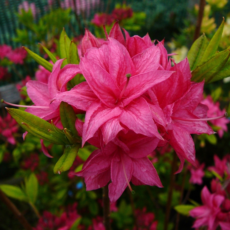 Azaleea "HOMEBUSH" este una dintre cele mai frumoase azalee lemnoase, cu flori mari, cu tulpină lungă, de o culoare roz izbitoare. Florile cresc în formă sferică și împreună cu frunzișul verde atrăgător creează un contrast interesant. înflorește din mai până în iunie, crescând până la 2 m înălțime și aceeași lățime. Azaleele de foioase sunt plante de pădure care, spre deosebire de azaleele japoneze, iubesc soarele deplin, cu condiția să le asigurăm un sol constant umed, acid, cu un ph între 4- 5. Ele preferă un sol ușor, necalcaros, permeabil, cu turbă, compost și un mulci lemnos de suprafață. Solurile grele sunt ușurate prin adăugarea de nisip și borax fin. Un drenaj bun este important în cazul solurilor argiloase grele. Tăiați ciorchinii de flori imediat după înflorire. Rădăcinile nu trebuie lăsate niciodată să se usuce.