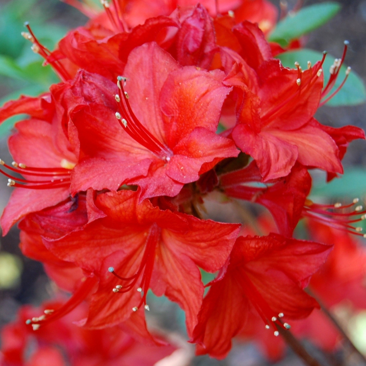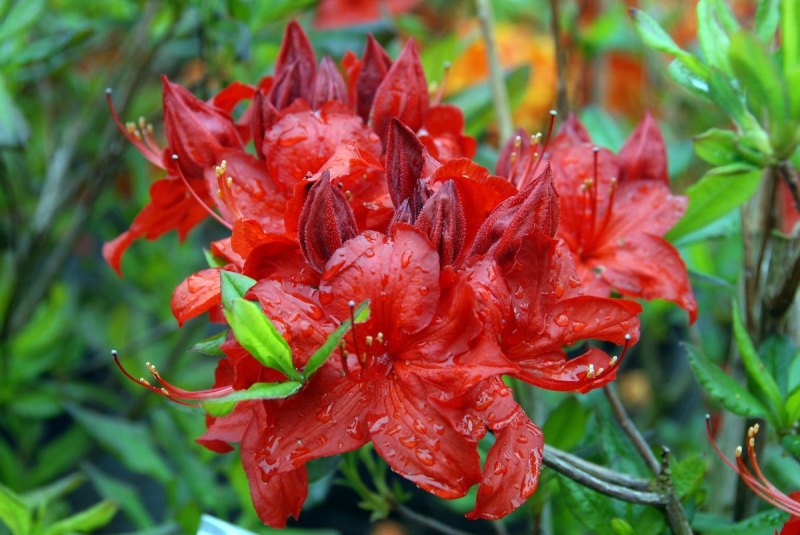 O azalee înfloritoare cu frumoase flori roșii. Înflorește din mai până în iunie, crește până la 2 m înălțime și aceeași lățime. Azaleele de foioase sunt plante de pădure care, spre deosebire de azaleele japoneze, iubesc soarele deplin, cu condiția să le asigurăm un sol constant umed, acid, cu un ph între 4- 5. Ele preferă un sol ușor, necalcaros, permeabil, cu turbă, compost și un mulci lemnos de suprafață. Solurile grele sunt ușurate prin adăugarea de nisip și borax fin. Un drenaj bun este important în cazul solurilor argiloase grele. Tăiați ciorchinii de flori imediat după înflorire. Rădăcinile nu trebuie lăsate niciodată să se usuce.