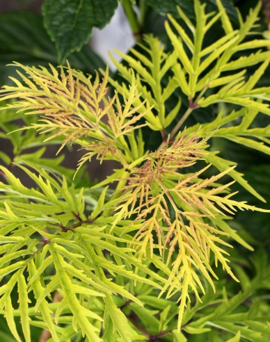Un cultivar nou de soc negru care a fost premiat cu o medalie de bronz. Numele în sine spune multe despre aspectul acestui cultivar. Are frunze verzi-aurii. Floarea este albă, iar obiceiul este columnar, cu o lățime maximă de 80 cm. Pentru că este un cultivar cu frunze aurii, este recomandată o poziție în afara căldurii de vară.Baza neagră (Sambucus nigra) se poate adapta la o gamă largă de tipuri de sol. Se dezvoltă cel mai bine în sol moderat umed, cu humus adecvat. Alegem o poziție într-o penumbra moderată. Alegeți îngrășăminte disponibile în mod obișnuit pentru arborii ornamentali. Tolerează foarte bine tăierea. Tunderea regulată va obține o formă foarte compactă.