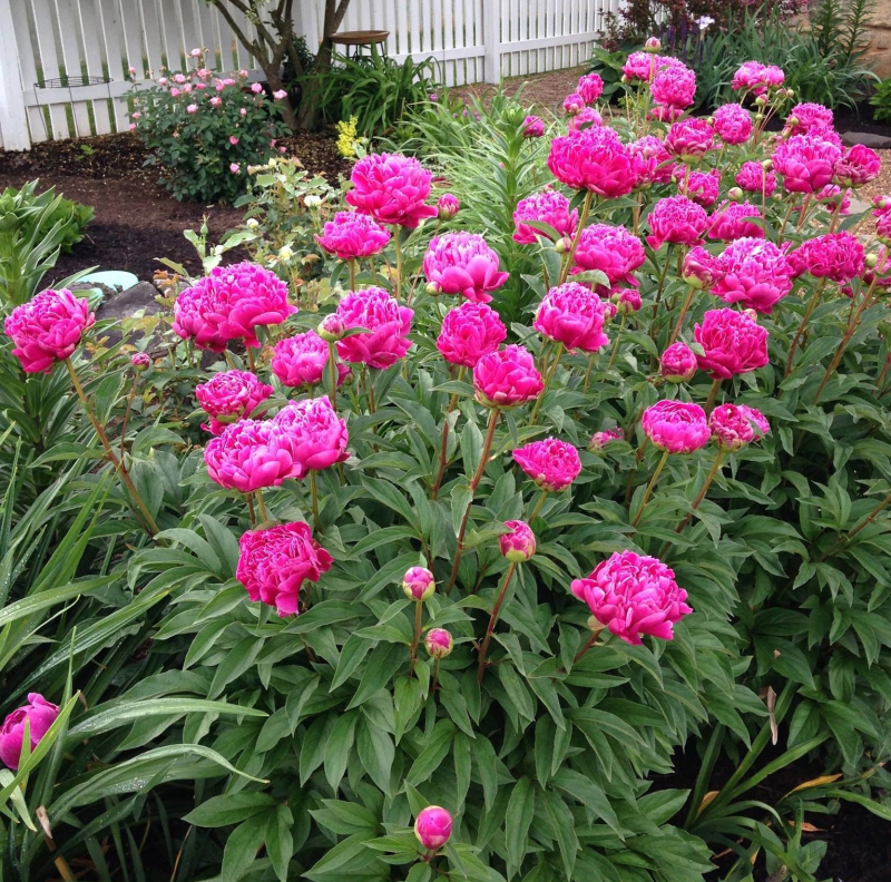 "Karl Rosenfield" este un cultivar semi-pitic cu flori de la roșu intens la roz intens. Bobocii florali sunt potriviți pentru tăiere și uscare.