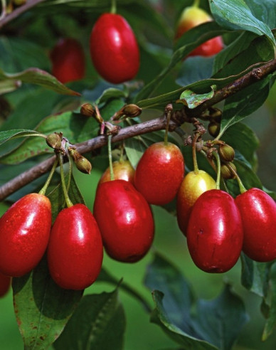 Adecvat pentru zonele mai reci. Fructul este mare, roșu, cu sâmbure alungit, cu gust acrișor, dulce când este complet copt. Fructul copt este de culoare roșu închis, ușor de separat atunci când este recoltat și cade atunci când este prea copt. Pulpa este suculentă, dulce și acră, cu un gust plăcut. Sâmburele este mai mare, regulat, alungit.