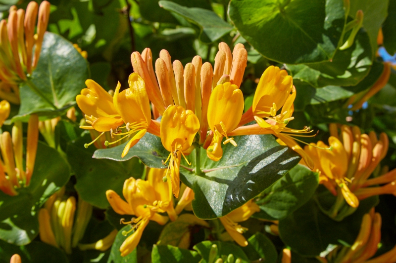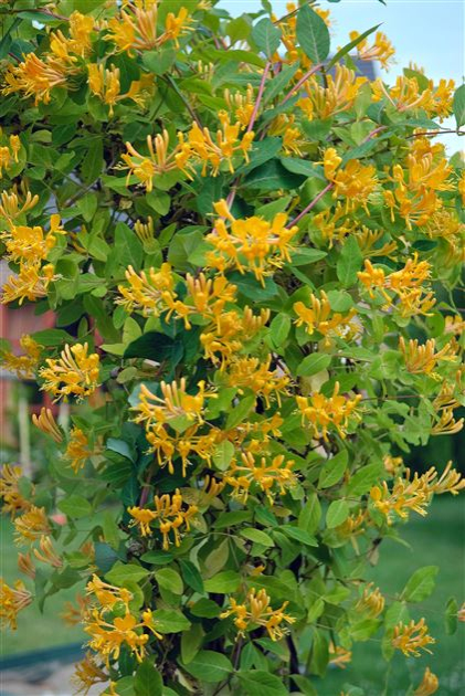 Cultivar obținut la Budapesta, Ungaria, în jurul anului 1920, prin încrucișarea L. sempervirens și L. tragophylla. Arbust cățărător, luxuriant, cu frunze caduce, care ajunge la o înălțime de 3,5-6 m. Frunze mari de 5-10 cm, verde închis pe față, albicioase-srireniforme pe partea inferioară. Florile în iulie-august înfloresc în galben-portocaliu. Boabele sunt roșu aprins, rotunde. Crește în orice sol de grădină, atâta timp cât nu este prea uscat. Crește bine atât la soare, cât și la umbră parțială. Rezistent în pădure -18°C până la -22°C. Recunoscător pentru acoperirea pe timp de iarnă, mai ales plantele tinere. Foarte impresionantă pe garduri. Ușor mai înaltă decât alte plante acoperitoare de sol trailing, deci va ieși bine în evidență pe pergole și ziduri de susținere mai mari.