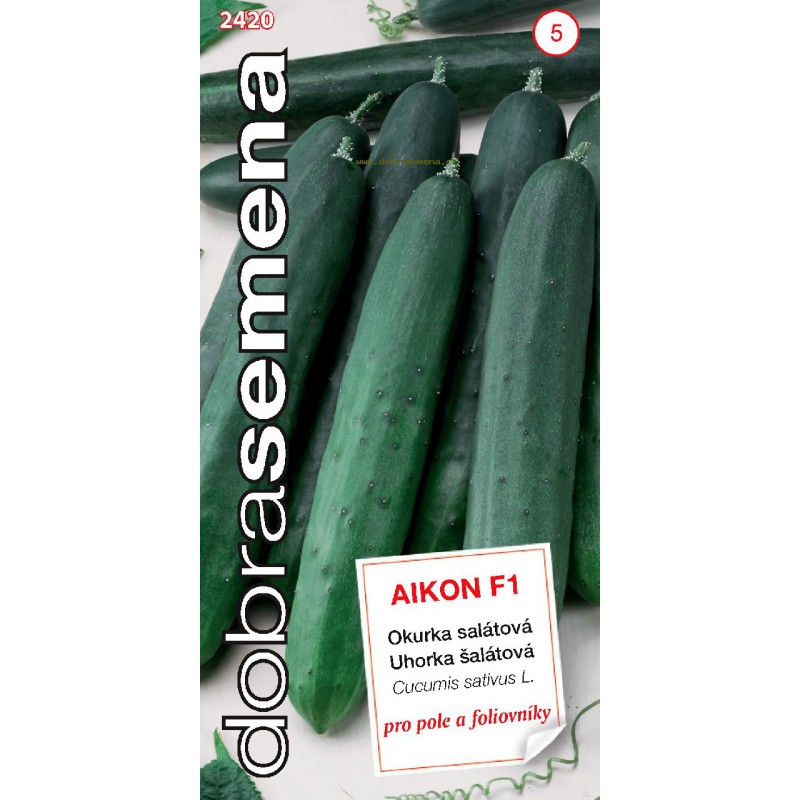 AIKON F1 - o salată de câmp hibridă timpurie de tip "American slicer" potrivită pentru cultivarea în câmp și în sere. Planta este de mărime medie, cu înflorire predominant feminină. Fructele sunt subțiri, cilindrice lungi, de 25-28 cm lungime. Coaja este de culoare verde închis, fără striații, cu puține spini. Fructele sunt rezistente la deformare și au un termen de valabilitate bun.