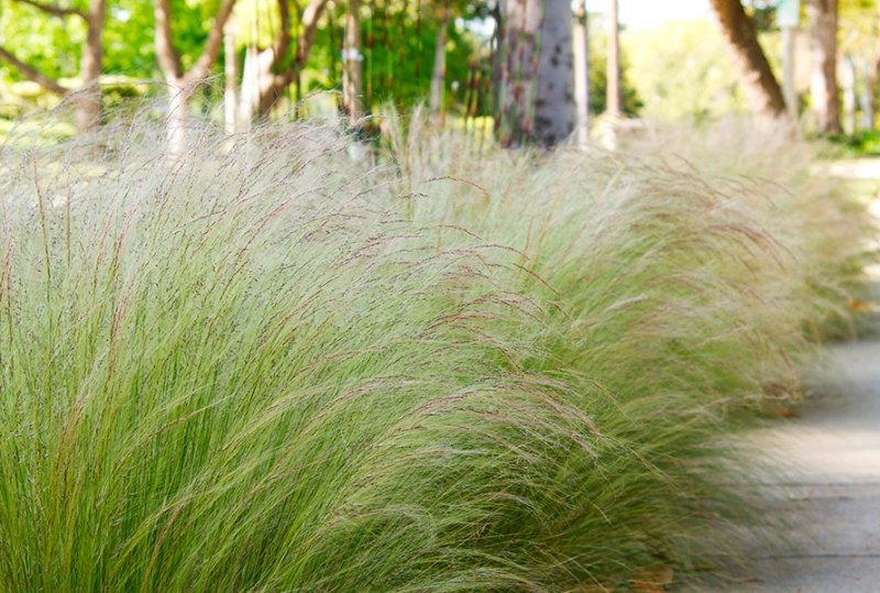 O iarbă ornamentală cu frunze înguste, fibroase, care se simt ca mătasea. Inflorescențe delicate alb-crem o împodobesc din iulie până în august. Iarna, necesită protecție prin acoperire.