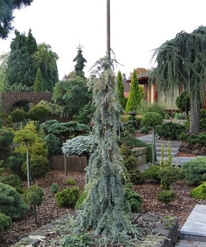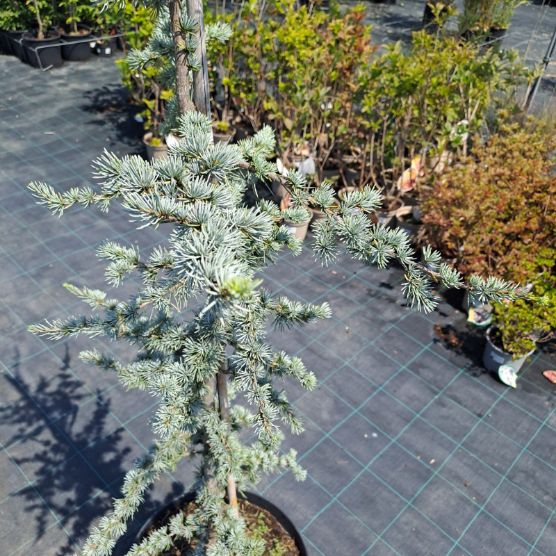 Cedrul "Atlantica La Fontaine" este tipic pentru ramurile sale căzătoare. Acele sunt de un albastru intens spre gri și destul de lungi. Înălțime până la 3 m. Tolerează bine tăierea și modelarea, deși acest lucru nu este necesar datorită formei sale interesante. Toleră orice sol bine drenat, de preferință cu reacție neutră sau ușor alcalină. Nu crește bine în soluri acide. Deoarece este un spiker rapid, face față și solurilor argiloase dacă este plantat primăvara. Tunderea se poate face la începutul primăverii sau la mijlocul verii. Are nevoie de mult soare pentru a crește bine, astfel încât să nu radă ramurile inferioare. Deși rezistența cedrului de Liban este ridicată, nu este recomandat pentru regiunile muntoase cu înghețuri prelungite sau pentru bazinele de îngheț.