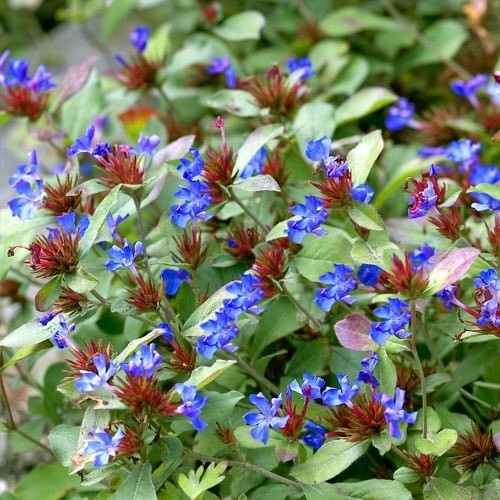Lăstunii sunt originari din China. Plantele formează arborete joase dense. Frunzele sunt de un verde luxuriant în timpul sezonului de creștere. Odată cu sosirea vremii mai reci din toamnă, frunzele terminale devin roșii și apar flori de un albastru strălucitor, formând un contrast minunat. Aceasta este o plantă perenă puțin pretențioasă la cultivare. Se dezvoltă ideal în locuri însorite.