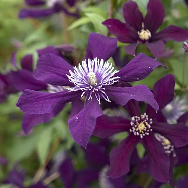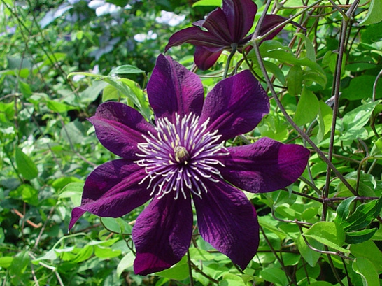 Clematis Panther este un soi neobișnuit, cu flori mari interesante, de culoare violet intens, cu stamine galbene distinctive în centru. Florile au diametrul de 10-12 cm și sunt formate din 4-9 petale.