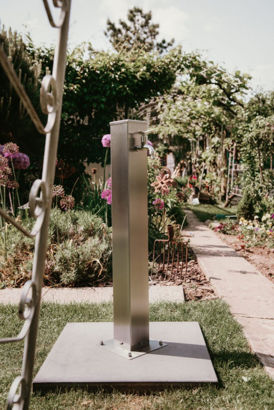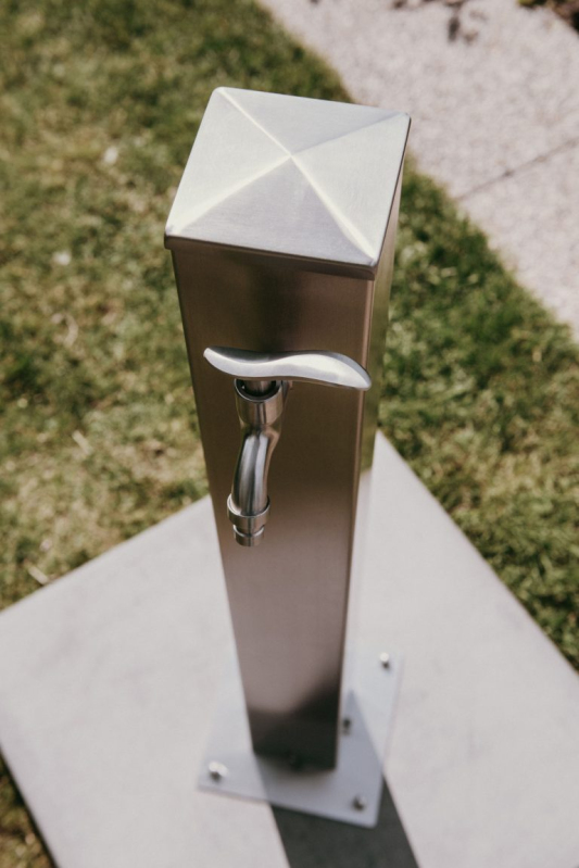Robinetul de grădină este fabricat din oțel inoxidabil standard AISI 304, care este sigur pentru sănătate și adecvat pentru contactul direct cu apa. Părțile vizibile sunt rectificate. Toate piesele, inclusiv îmbinările prefabricate și șuruburile, sunt din oțel inoxidabil. Robinetul este, de asemenea, din oțel inoxidabil, este echipat cu o supapă ceramică, iar filetele atât pe partea de intrare, cât și pe cea de ieșire au dimensiunea de 1/2″.