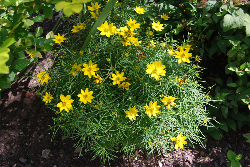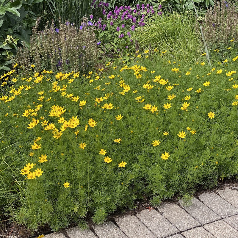 Coreopsis verticillata Zagreb - o frumusețe galbenă joasă, distinctivă, care strălucește în grădină și în containere în picioare. Se caracterizează prin obiceiul compact de creștere și culoarea galben strălucitoare a florilor. Înflorește neobosit pe tot parcursul verii și până toamna.