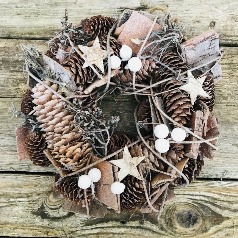 Coroniță decorativă naturală cu conuri de pin 25cm.