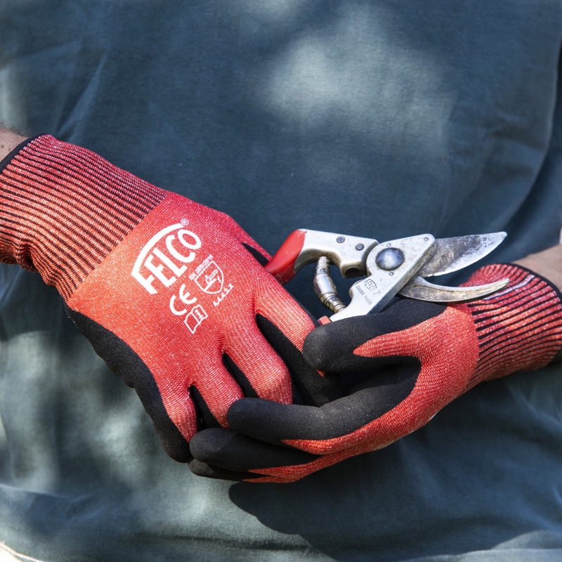 Mănuși FELCO 701 dezvoltate ținând cont de nevoile atât ale lucrătorilor profesioniști, cât și ale utilizatorilor amatori. Acest model, fabricat din tricot HPPE, este ușor și ergonomic și garantează o rezistență ridicată la tăieturi. Degetele și palma acoperite cu nitril asigură o aderență și o durabilitate excelente. Potrivit pentru viticultori, peisagiști, pomicultori.
