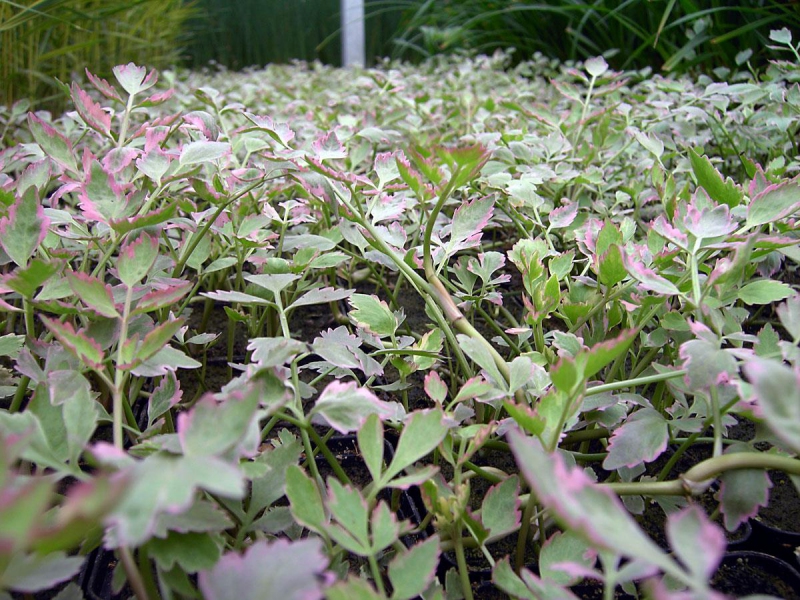 Planta are o frunză decorativă frumos colorată în roz. Înflorește din iunie până în august. Are flori albe parfumate. Planta preferă o locație în plin soare sau umbră parțială.