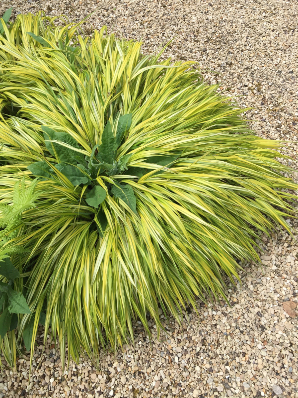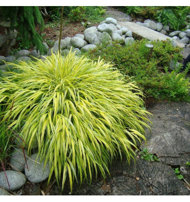 Hakonechloa macra Aureola este de mult timp unul dintre cele mai populare cultivaruri de ierburi ornamentale. Este apreciat în special pentru obiceiul său dens și creșterea fiabilă, unde poate forma, de asemenea, un model mai continuu în subarboret. Frunzele au benzi longitudinale alternante galbene și verzi. Toamna, domină o culoare aurie distinctivă.