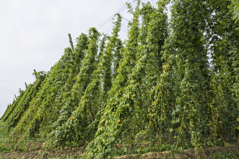 Hopul este o liană perenă al cărei rizom supraviețuiește iarna în sol sub formă de muguri. Bulbii dreptunghiulari cu păr ascuțit (în formă de cârlig), care se înfășoară în jurul plantelor vecine, au o lungime de aproximativ 6 m. Frunzele sunt opuse transversal, stând în două rânduri lângă inflorescență la exemplarele femele. Frunzele au un pețiol lung și sunt 3-7 lobate. Partea superioară este verde închis și aproximativ păroasă, iar partea inferioară este mai deschisă. Hameiul este dioic (mascul și femelă). Florile masculine formează panicule lungi. Florile feminine sunt așezate în perechi în axilele bractee în spițe scurte, transformându-se în conuri căzătoare de mărimea unei nuci pe măsură ce se maturizează.