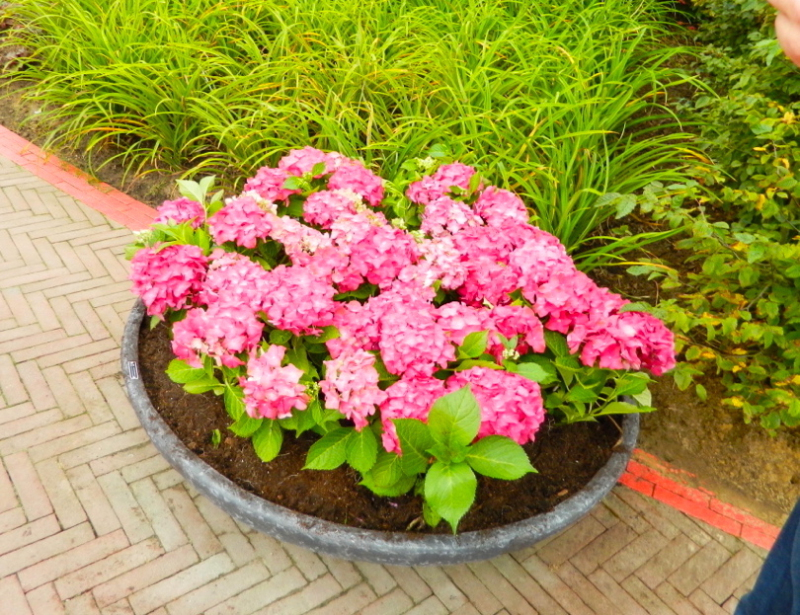 Flori în căpățâni globuloase, de mărime medie, cu lățimea de până la aproximativ 18 cm, cu flori roz-violaceu la început, ulterior devenind roșii.