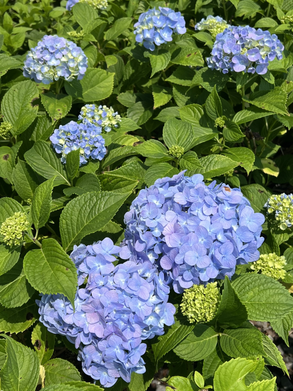 Handrangea cu frunze mari ´Nikko Blue´ este un arbust de talie medie care se mândrește cu buchete mari de flori de culoare albastru cer. Inflorescențele sunt atractive pentru o perioadă foarte lungă de timp, din iunie până în septembrie, după uscare fiind un decor al paturilor de iarnă. Hydrangea Nikko Blue cu frunze mari crește până la o înălțime de 130-180 cm. Frunzele sunt de o culoare verde intens, cu zimți distinctivi. Pentru a favoriza culoarea albastră a florilor, este esențial să oferiți Nikko Blue un pH acid al solului.