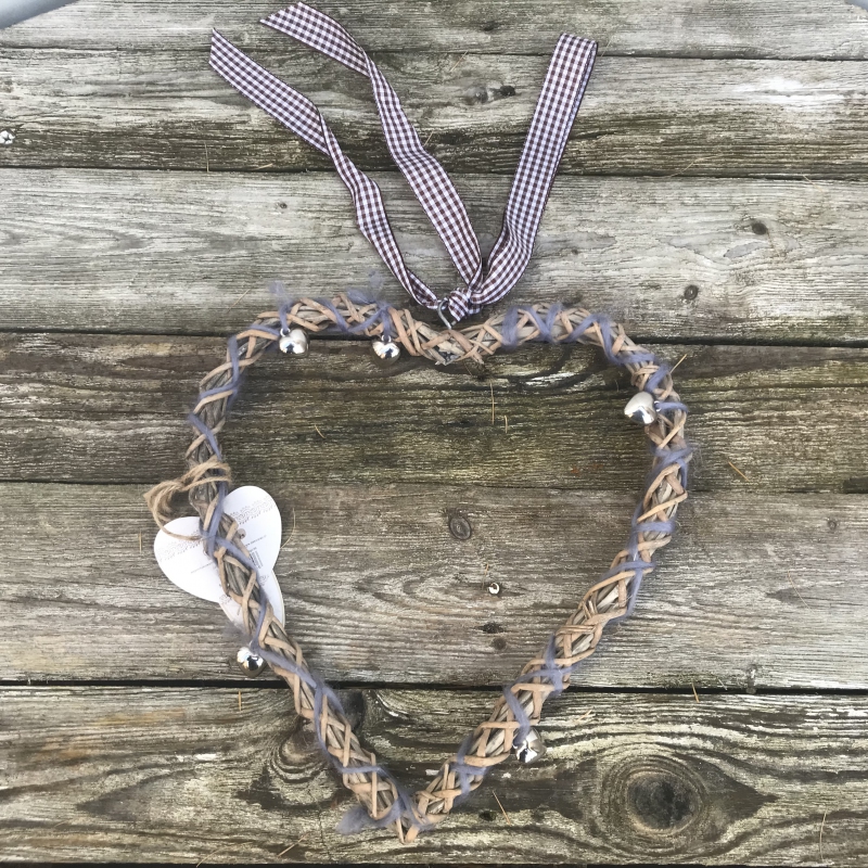 Inimă răsucită cu inimi metalice 23cm.