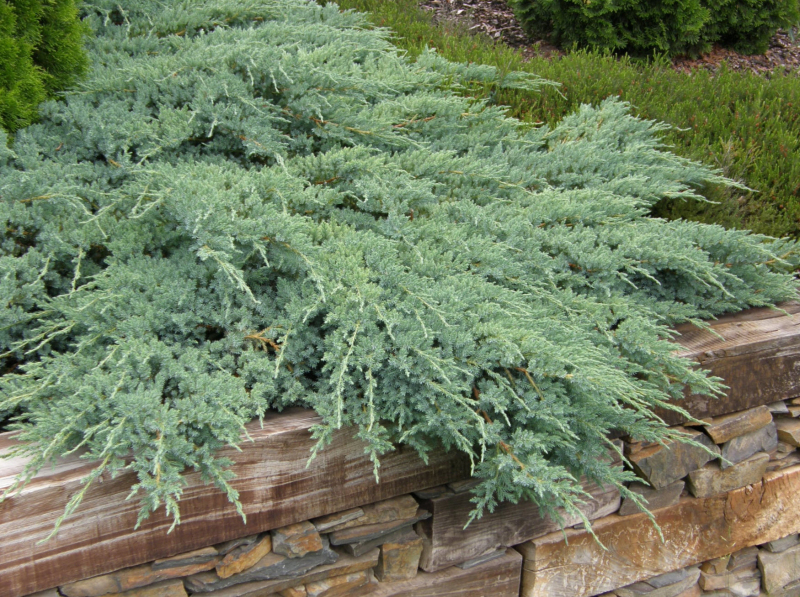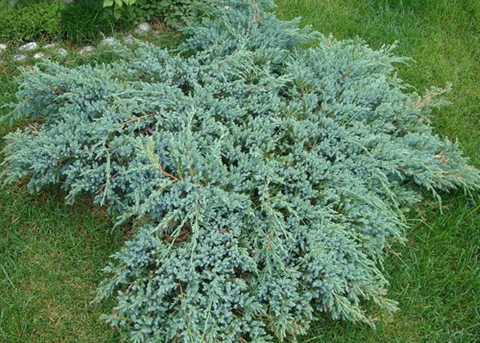 Carota albastră ´BLUE CARPET´ este un arbust conifer, târâtor, cu creștere relativ rapidă, care formează un covor dens. După 10 ani atinge o înălțime de aproximativ 50 cm și un diametru de 150-200 cm. Arbustul are lăstari rigizi, ușor elevați, care se extind lateral. Acele sunt scurte, înțepătoare, de culoare albastru-gri și acoperite cu un strat ceros. Crește bine în toate solurile ușoare și permeabile. O poziție însorită sau umbră parțială este ideală.