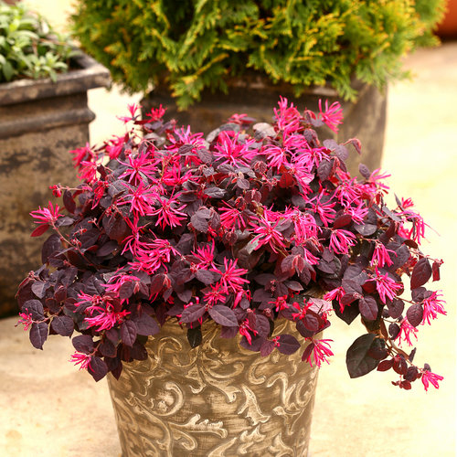 Loropetalum este originar din zonele din Asia de Sud-Est (sudul Chinei, poalele Himalayei în nord-estul Indiei). Acest soi roșu este foarte popular pentru culoarea frunzelor sale roșii. În sezonul de înflorire, coroana este acoperită cu frumoase flori roz exotic. Florile se formează și vara și toamna, dar nu la fel de intens. După polenizare, florile se maturizează în capsule întunecate care conțin semințe. Acest copac nu este foioase, deci are nevoie de o poziție însorită pe tot parcursul anului. Poate fi cultivat și la umbră parțială, dar frunzele sunt verzi și copacul este sănătos. O poziție însorită este mai potrivită pentru acest soi, deoarece frumoasele frunze roșii ies în evidență.