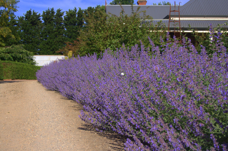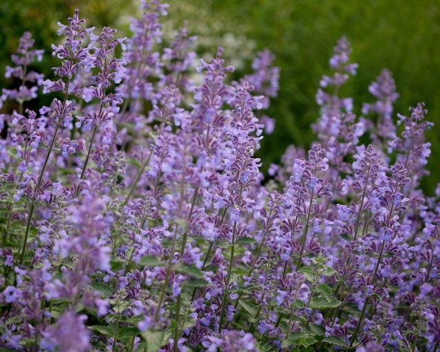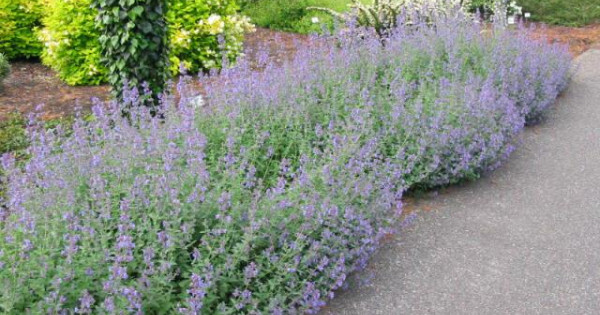 Nepeta grandiflora Six Hills Giant este un cultivar înalt, cu frunze gri-verzui. De la sfârșitul primăverii, aproape până la îngheț, pe plante apar flori mov pal, care sunt mâncate cu nerăbdare de insectele benefice.