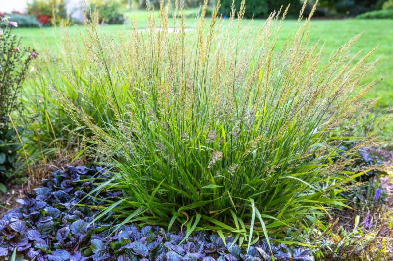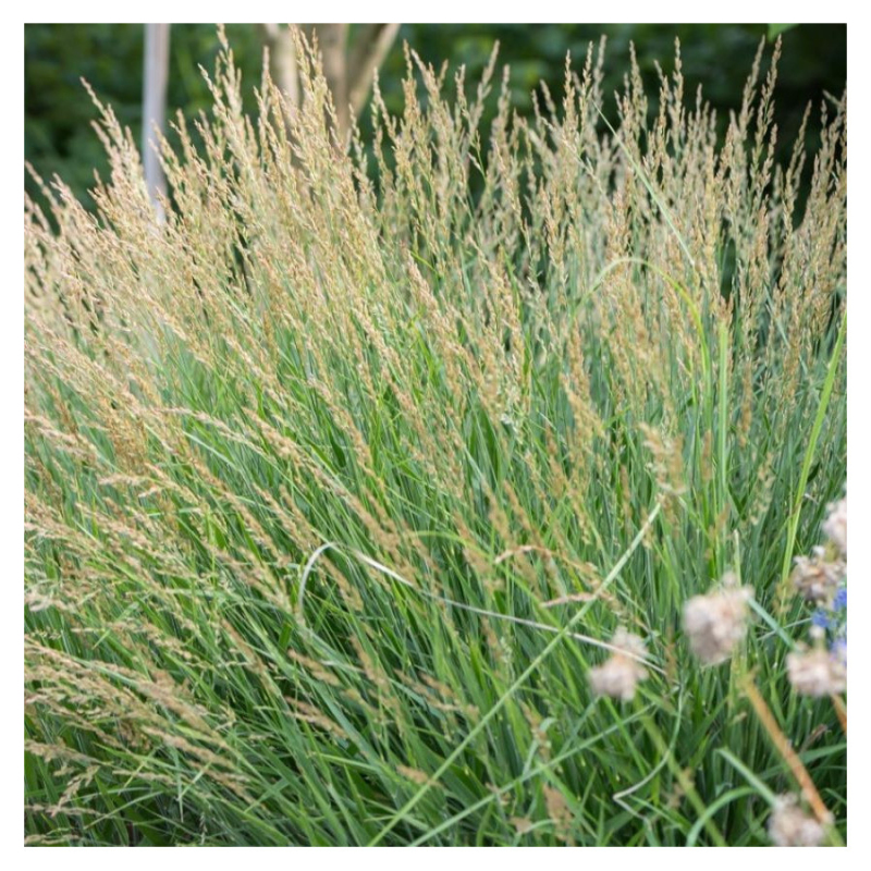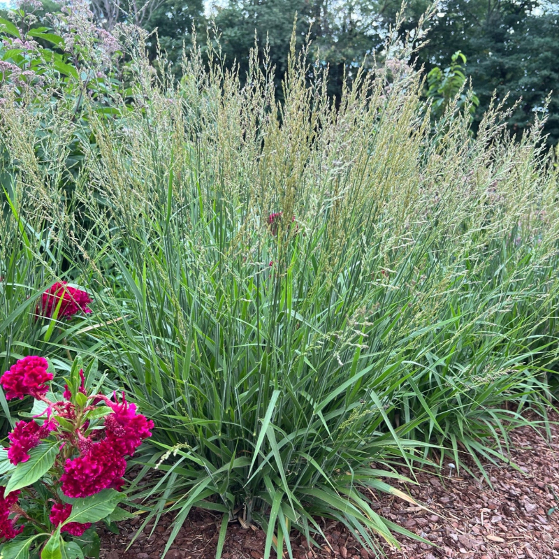 Acest hibrid mai scurt, care seamănă puțin cu un Karl Foerster pitic, formează o movilă densă de frunze verzi care este acoperită cu o mulțime de inflorescențe maro aurii mai târziu în sezon.