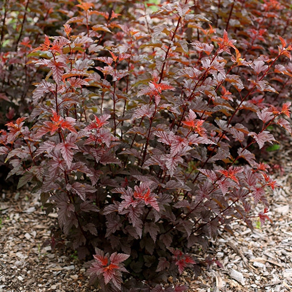 Frumos arbust ornamental, în special pentru frunzele sale roșu burgundy. Crește până la o înălțime de 1,5-1,7m. Florile albe sferice înfloresc din mai până în iunie. Puțin pretențios la tăiere, se potrivește atât la soare, cât și la umbră parțială și pe sol aerisit.