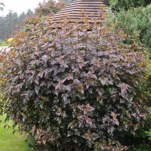 Frumos arbust ornamental, în special pentru frunzele sale roșu burgundy. Crește până la o înălțime de 1,5-1,7m. Florile albe sferice înfloresc din mai până în iunie. Puțin pretențios la tăiere, se potrivește atât la soare, cât și la umbră parțială și pe sol aerisit.