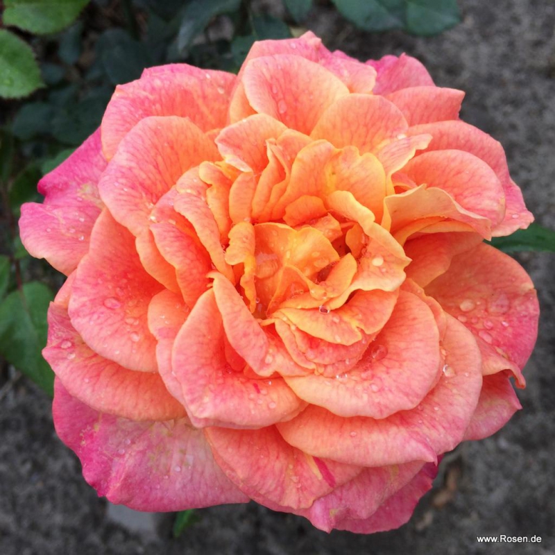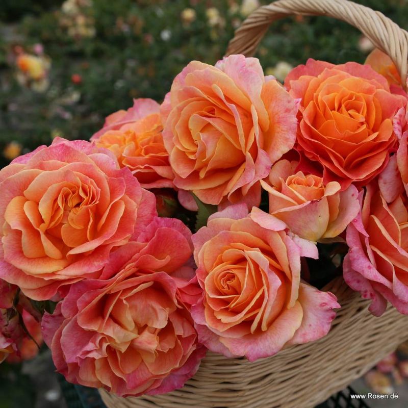 Arbust hibrid puternic, cu creștere verticală, cu flori de formă elegantă în buchețele mici și frunze sănătoase. Florile mari, foarte duble, prezintă un joc viu de culori între galben moale, portocaliu aprins și roz.