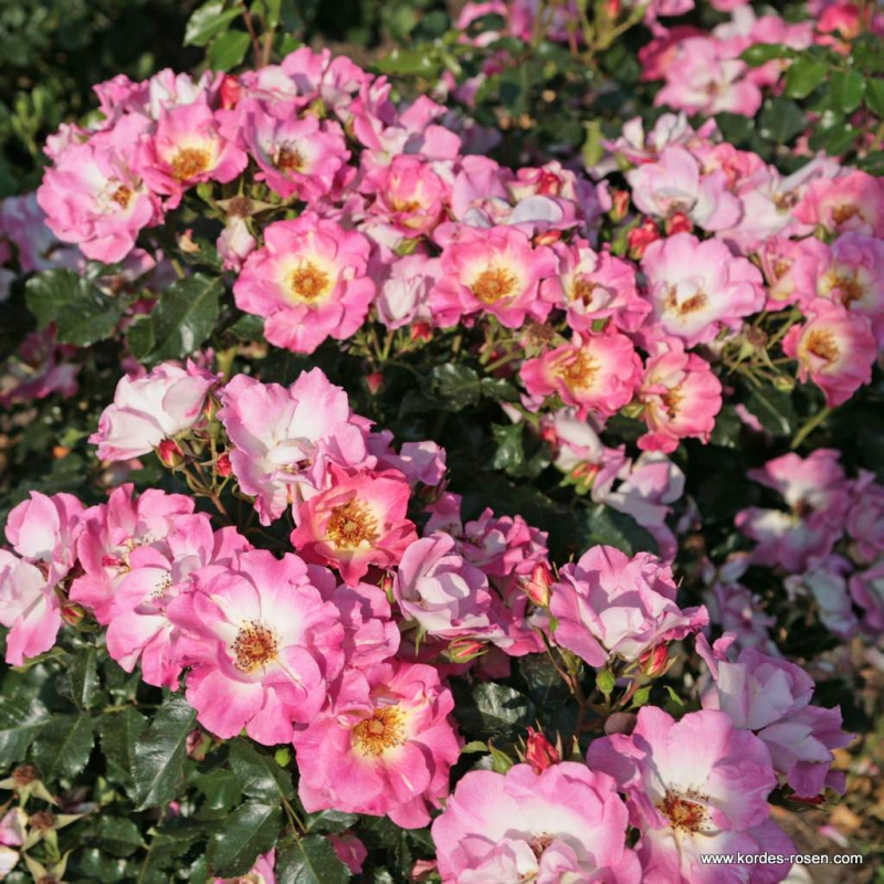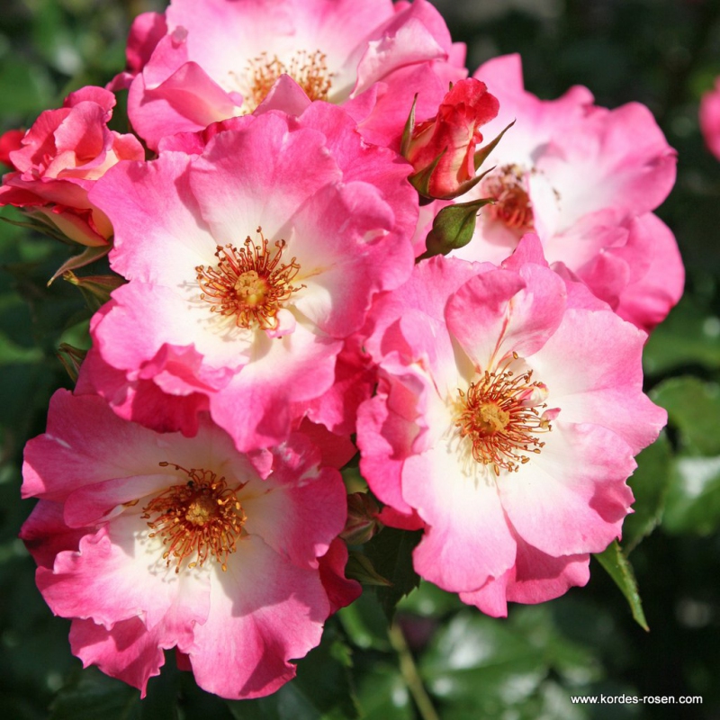 Acest nou trandafir cu mai multe flori atrage atenția prin mărimea florilor, care sunt simple, dar frumos colorate de la alb la tonuri de roz la marginile florilor mari. Centrele sunt roșu-portocaliu și se îmbină frumos cu rozul petalelor.