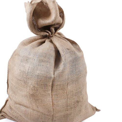 Sacul de cadouri din iută se închide ușor cu un cordon.