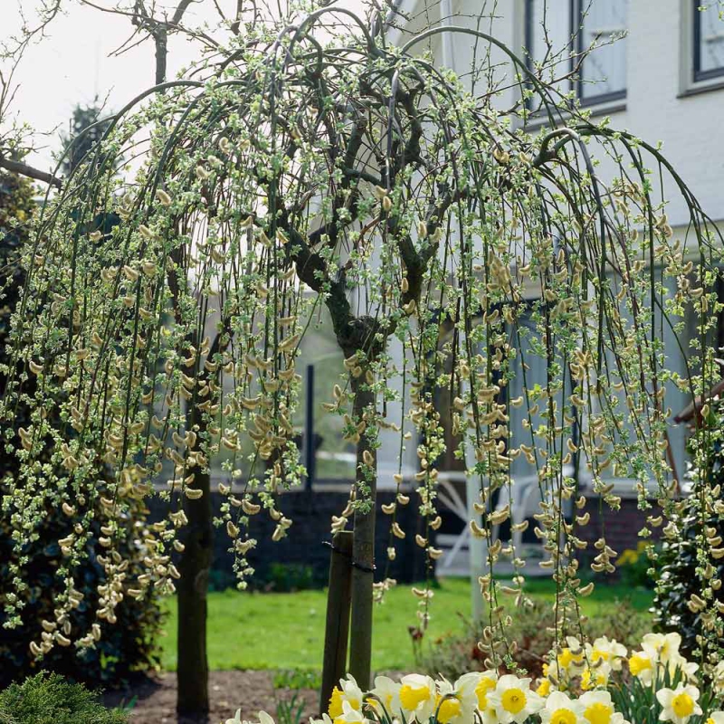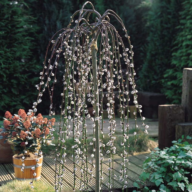 Salcie înaltă, pe tulpină, cu ramuri răsucite supraînălțate ca niște păstăi. Abundent ramificată și rezistentă. Produce mlădițe atractive primăvara și are frunze bogate vara. Poate fi tăiat oricând, dar mai ales după înflorire. Potrivit ca solitar, dominator, în grădini frontale, de asemenea în containere, în paturi.