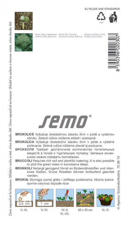 Varietate demonstrativă de tip de tulpină pentru recoltarea succesivă a rozetelor. Planta este bogat ramificată la maturitate, rozetele centrale au diametrul de 8-10 cm, rozetele laterale - care cresc din axilele frunzelor - sunt mai mici. Perioada de vegetație de la semănat până la recoltare este de 80-120 de zile.