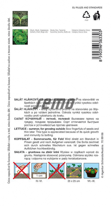 Salată de vară cu salate mari, fragede, bine sigilate, cu aromă plăcută și rezistență ridicată la încolțire.