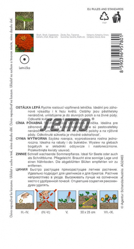 O plantă anuală verticală cu creștere rapidă. Ideal pentru paturi și tăieri. Durata de viață a florii în vază este de 8 până la 10 zile. Ușor de cultivat, așezați în poziții însorite în sol nutritiv. Îndepărtați florile când s-au ofilit. Selecție de flori pline de culoare roșu aprins.