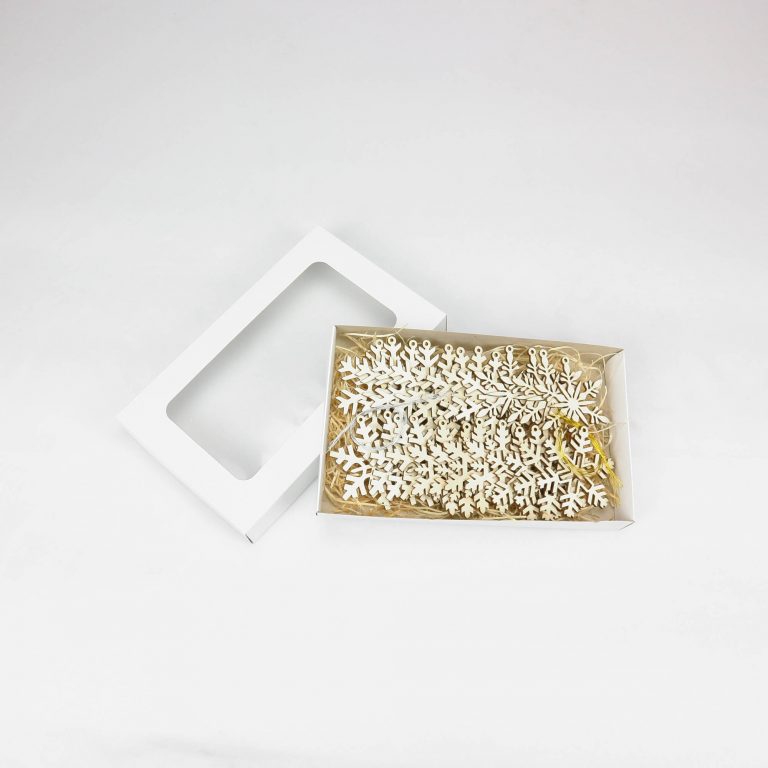Set cu fulgi de zăpadă - cutie cu decorațiuni de Crăciun