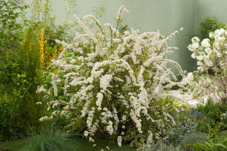 Spiraea este un arbust compact de foioase cu ramuri arcuite. La începutul primăverii, ramurile subțiri și goale sunt căptușite cu flori albe, parfumate, care înfășoară literalmente ramurile. Frunzele sunt lanceolate, de culoare verde închis și devin galbene toamna.