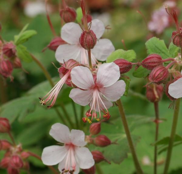 Spessart înflorește cu flori albe simple, cu cinci petale, din mai până în iulie. Florile sunt mai mici și ies frumos în evidență alături de frunzele verzi, palmat lobate, care capătă culoare toamna. Întreaga plantă perenă crește până la o înălțime de 40 cm.