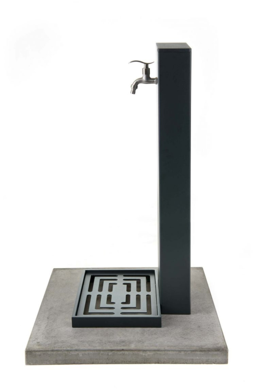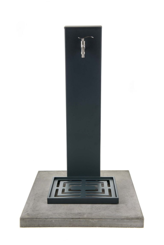 Stĺpik je vyrobený z nerezovej ocele štandardu AISI 304. Rošt a strieška zasa z veľmi masívnej čiernej ocele, ktorá bola pred farbením galvanicky pozinkovaná. Povrch je upravený vypalovanou práškovou farbou, odtieň RAL 7016 – antracit. Rošt je ku stĺpiku uchytený pomocou skrutiek. Všetky zvyšné spoje su zvárané. Kohútik je nerezový, je vybavený keramickým ventilom a závity na vstupnej aj výstupnej strane majú veľkosť 1/2″.